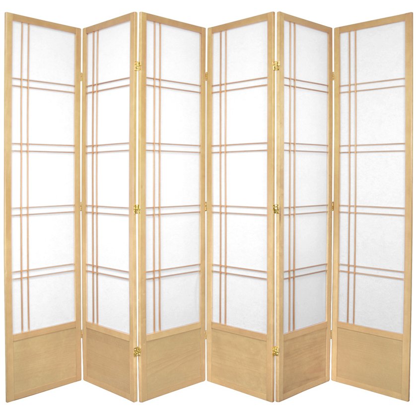 Difficult to find in the USA, the extra tall 6.5 foot Double Cross Shoji a subtle, Zen influenced design, with a kick plate added to avoid scuffs. Great for rooms with high ceilings, or where greater privacy is preferred. Panels are constructed using fine mortise and tenon joinery, durable, and beautifully finished. Shade is strong; fiber reinforced pressed pulp rice paper- allows diffused light, yet provides privacy. Lacquered brass, two- way hinges mean you can bend the panels in either direction. Each panel measures approximately 17.5"W x 78"H x 0.75"DDimension: 1.00"L x 105.00"W x 78.00"H
