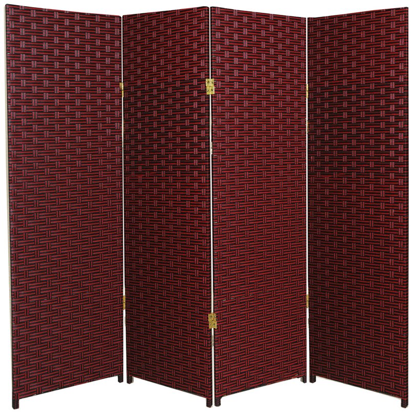 Oriental Furniture 4 ft. Tall Woven Fiber Room Divider - 4 Panel - Red/Black