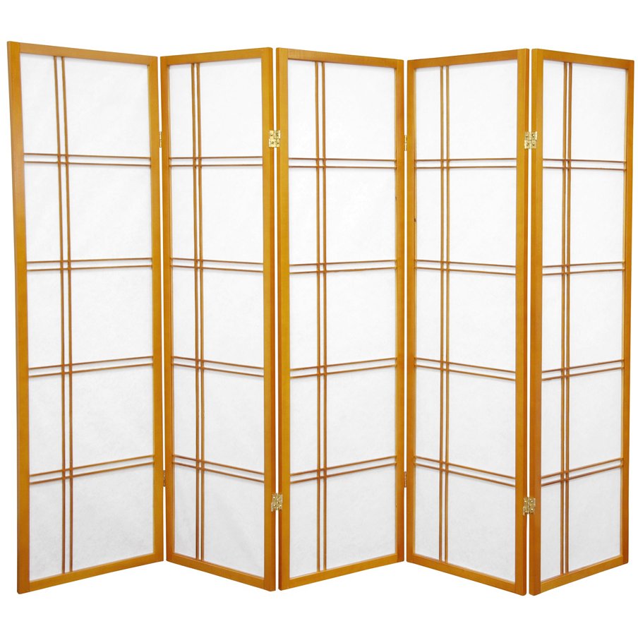 Oriental Furniture 5 ft. Tall Double Cross Shoji Screen - 5 Panel - Honey