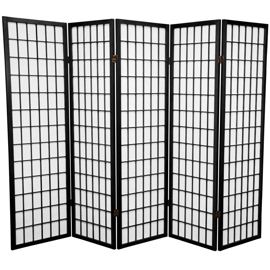 The Window Pane design is the most traditional of shoji screens and complements a variety of decors. The lower height is perfect where a lower height is preferred, or simply for adding a new design element to your space This screen measures five feet tall. Panels are constructed using fine mortise and tenon joinery, durable, and beautifully finished. Shade is strong, fiber reinforced, pressed pulp rice paper- allows diffused light, and provides privacy. Lacquered brass, two- way hinges mean you can bend the panels in either direction. Each panel measures approximately 17"W x 60"H x 0.75"DDimension: 1.00"L x 85.00"W x 60.00"H