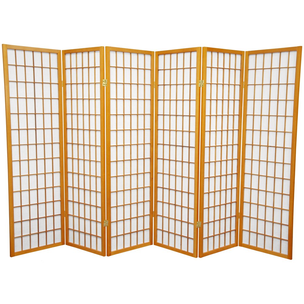 Oriental Furniture 5 ft. Tall Window Pane Shoji Screen - 6 Panel - Honey