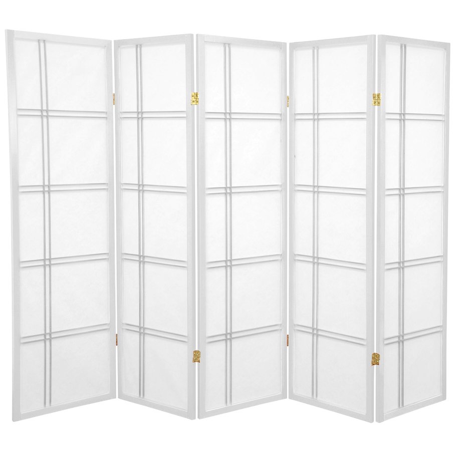 An attractive, five foot tall, Zen influenced design. Ideal for use anywhere a shorter screen is preferred such as an unsightly area, kid's play area, etc. This screen measures five feet tall. Crafted from durable, lightweight Scandinavian Spruce, using Asian style mortise & tenon joinery. Shade is strong, fiber reinforced, pressed pulp rice paper- allows diffused light, yet provides privacy. Lacquered brass, two- way hinges mean you can bend the panels in either direction. Each panel measures approximately 17"W x 59.5"H x 0.75"DDimension: 1.00"L x 85.00"W x 60.00"H