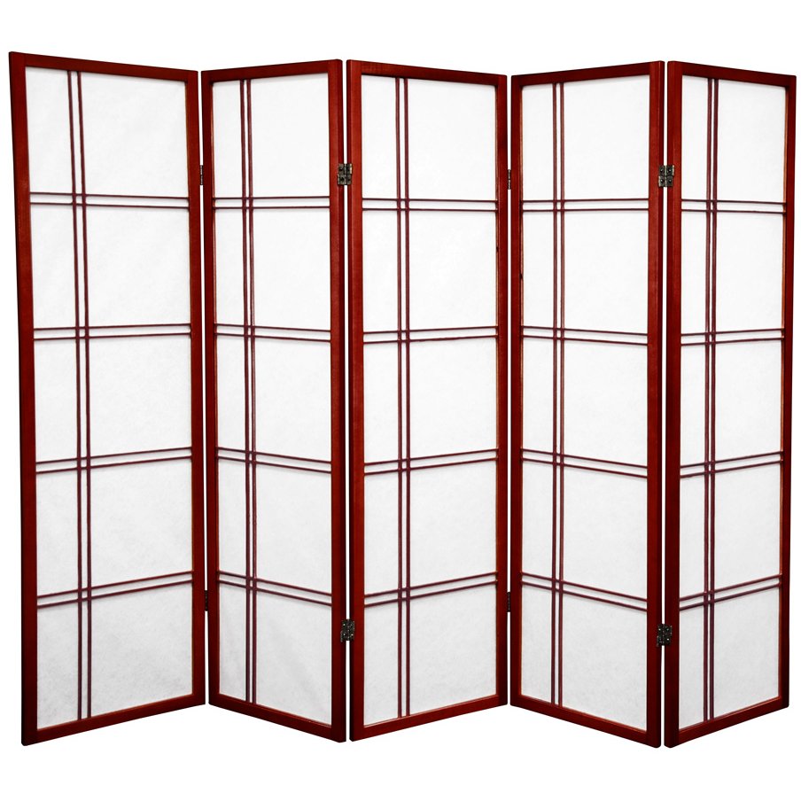 An attractive, five foot tall, Zen influenced design. Ideal for use anywhere a shorter screen is preferred such as an unsightly area, kid's play area, etc. This screen measures five feet tall. Crafted from durable, lightweight Scandinavian Spruce, using Asian style mortise & tenon joinery. Shade is strong, fiber reinforced, pressed pulp rice paper- allows diffused light, yet provides privacy. Lacquered brass, two- way hinges mean you can bend the panels in either direction. Each panel measures approximately 17"W x 59.5"H x 0.75"DDimension: 1.00"L x 85.00"W x 60.00"H