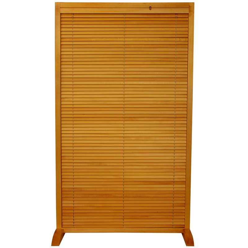 A beautiful, exceptionally practical room divider, solidly crafted from sturdy, durable, kiln dried Spruce wood. The single panel design is stabilized by perpendicular feet, crafted with a unique, adjustable slat venetian blinds style shade, so you decide how much or how little light to allow to pass through. Unique, adjustable wood slat, venetian blinds style design. Well crafted from solid, high quality kiln dried Spruce.A light weight, practical design, equally attractive viewed from either side. Note: wood feet are removed for shipping, simple assembly required. Single panel measures approximately 35.5"W x 35.5"W x 1"DDimension: 2.00"L x 35.00"W x 61.00"H