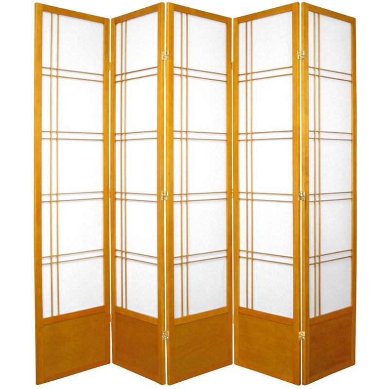 Oriental Furniture 6 1/2 ft. Tall Double Cross Shoji Screen - 5 Panel - Honey