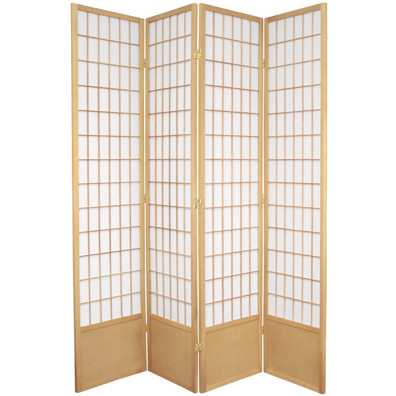 Hard to find in the US, the extra tall 6.5 foot Window Pane Shoji (6ft, 6in.) is a classic design with a kick plate added at the bottom to avoid scuffs. Great for rooms with high ceilings, or where greater privacy is preferred. Panels are constructed using fine mortise and tenon joinery, durable, and beautifully finished. Shade is strong, fiber reinforced, pressed pulp rice paper- allows diffused light, yet provides complete privacy. Lacquered brass, two- way hinges mean you can bend the panels in either direction. Each panel measures approximately 17.5"W x 78"H x 0.75"DDimension: 1.00"L x 70.00"W x 78.00"H