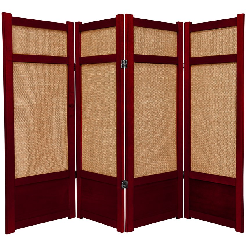 Oriental Furniture 4 ft. Tall Low Jute Shoji Screen - 4 Panel - Rosewood
