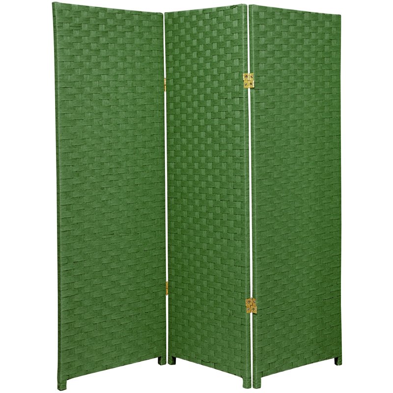 This natural 4 ft. Tall Woven Fiber Room Divider brings an earthy, serene feeling to any room. Natural hand woven fibers completely covers a wooden frame for a clean, frameless look. Double sided hinges for the maximum design flexibility. Fully covered in woven fiber, equally beautiful both sides. Sturdy yet lightweight, great portability Each panel measures approximately 16"W x 48"H x 0.75"DDimension: 48.00"L x 48.00"W x 1.00"H