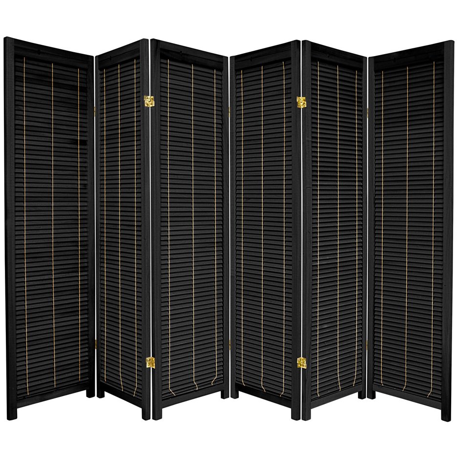 Oriental Furniture 5 1/2 ft. Tall Wooden Shutter Screen - 6 Panel - Black