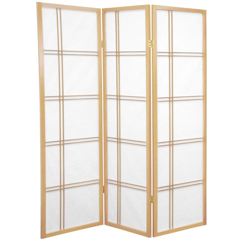 An attractive, five foot tall, Zen influenced design. Ideal for use anywhere a shorter screen is preferred such as an unsightly area, kid's play area, etc. This screen measures five feet tall. Crafted from durable, lightweight Scandinavian Spruce, using Asian style mortise & tenon joinery. Shade is strong, fiber reinforced, pressed pulp rice paper- allows diffused light, yet provides privacy. Lacquered brass, two- way hinges mean you can bend the panels in either direction. Each panel measures approximately 17"W x 59.5"H x 0.75"DDimension: 1.00"L x 51.00"W x 60.00"H
