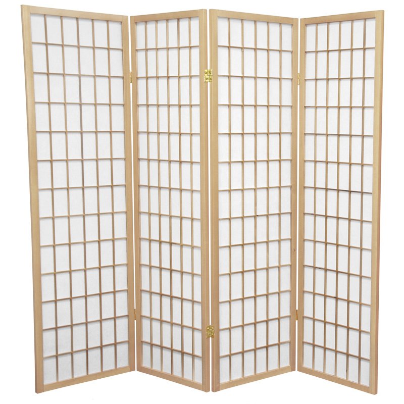 The Window Pane design is the most traditional of shoji screens and complements a variety of decors. The lower height is perfect where a lower height is preferred, or simply for adding a new design element to your space This screen measures five feet tall. Panels are constructed using fine mortise and tenon joinery, durable, and beautifully finished. Shade is strong, fiber reinforced, pressed pulp rice paper- allows diffused light, and provides privacy. Lacquered brass, two- way hinges mean you can bend the panels in either direction. Each panel measures approximately 17"W x 60"H x 0.75"DDimension: 1.00"L x 68.00"W x 60.00"H