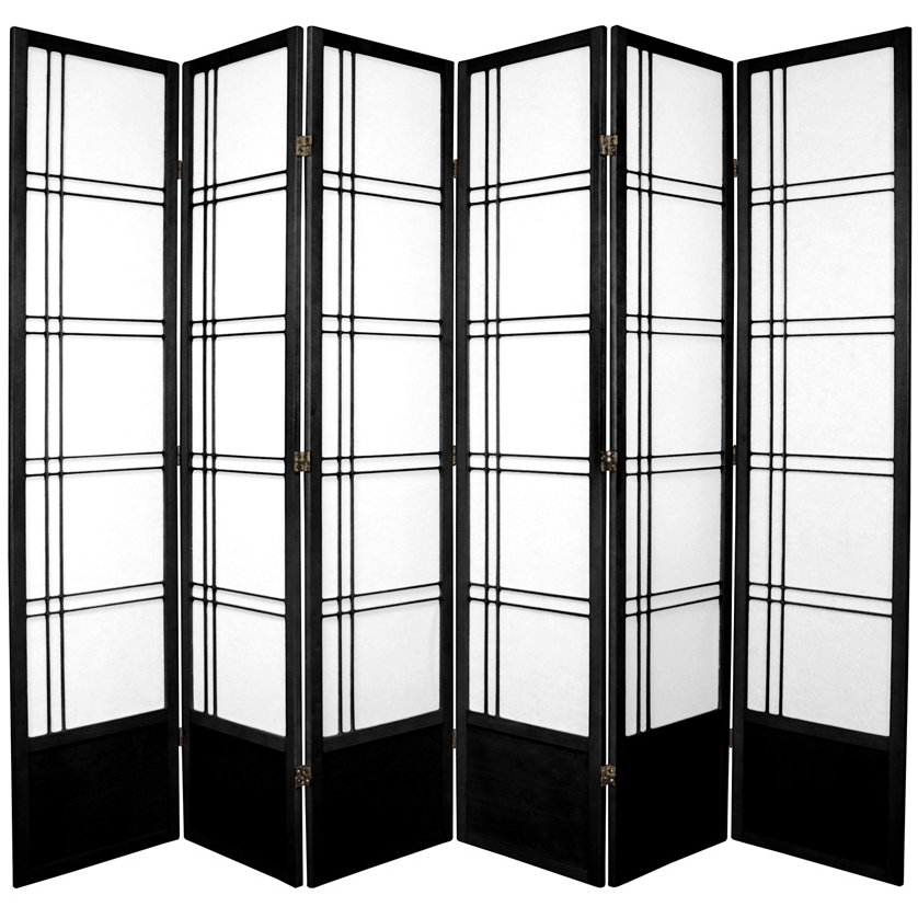 Oriental Furniture 6 1/2 ft. Tall Double Cross Shoji Screen - 6 Panel - Black