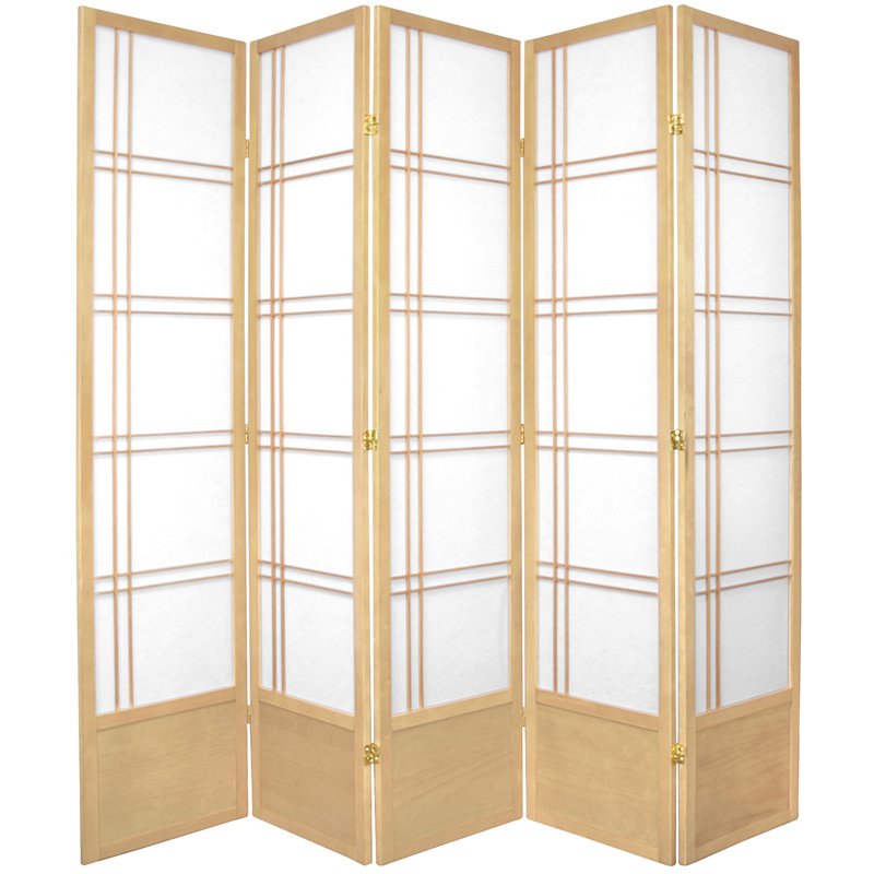 Oriental Furniture 6 1/2 ft. Tall Double Cross Shoji Screen - 5 Panel - Natural
