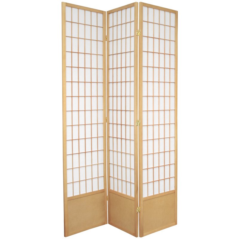 Hard to find in the US, the extra tall 6.5 foot Window Pane Shoji (6ft, 6in.) is a classic design with a kick plate added at the bottom to avoid scuffs. Great for rooms with high ceilings, or where greater privacy is preferred. Panels are constructed using fine mortise and tenon joinery, durable, and beautifully finished. Shade is strong, fiber reinforced, pressed pulp rice paper- allows diffused light, yet provides complete privacy. Lacquered brass, two- way hinges mean you can bend the panels in either direction. Each panel measures approximately 17.5"W x 78"H x 0.75"DDimension: 1.00"L x 52.50"W x 78.00"H