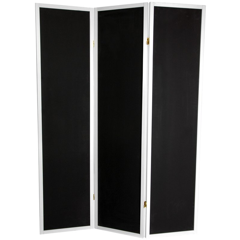 A practical, functional piece of furniture, this is a dual purpose room divider, designed to make communication easier. Leave messages on the chalk board panels with white or colored chalk, for students, family, or associates to see. A lightweight, sturdy folding screen effective for dividing space, redirecting foot traffic, or blocking the view from a window or door way. Leave messages, memos, or diagrams in white or colored chalk. Well crafted from strong, sturdy, kiln dried Scandinavian Spruce. Front side of each panel finished with authentic chalkboard. Lacquered brass, two- way hinges mean you can bend the panels in either direction. Each panel is approximately 17.75"W x 71"H x 1"DDimension: 1.00"L x 52.50"W x 71.00"H